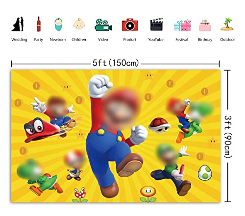 Sfondo Super Bros per 10° compleanno videogioco Photogrsphy sfondo per bambini forniture per feste ragazzi baby shower torta decorazione tavolo banner fotografia studio puntelli (150 x 90 cm)