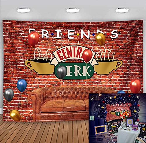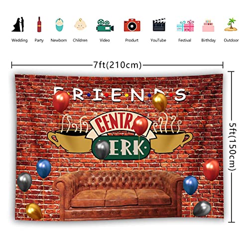 Sfondo a tema Central Perk muro di mattoni rossi retrò pub divano e caffè sfondo per uomo donna adulto festa di compleanno decorazione ritratto banner foto stand puntelli studio 17 x 15 piedi