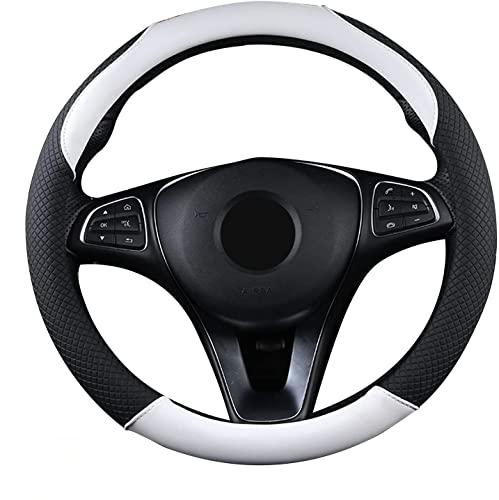SFONIA Coprivolante Copri Sterzo per Auto Protezione Custodia Volante Cover in Pelle Artificiale Universale 37-38cm / 15" Antiscivolo Traspirante Durevole (Bianco)