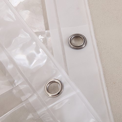 Tende da doccia con robusto orlo rinforzato con pesi. Bordo con pesi per tenere ferma la tenda, copriasola anti corrosione e anti ruggine. Include 12 ganci e anelli per tenda da doccia in plastica di alta qualità.