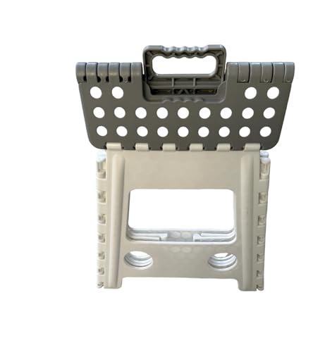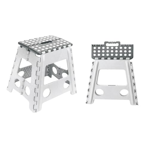 Sgabelli per camerette bagno cucina giardino per bambini e adulti in PVC con maniglia portata fino 150 kg (29 x 22 x 39 cm, Griggio - Bianco)