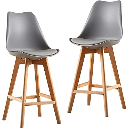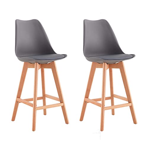 Sgabelli bar cuccina ristorante Set 2 Sgabelli in polipropilene, seduta in ecopelle e gambe in faggio (2, GRIGIO)