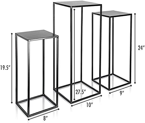 Set di 3 sgabelli per fiori in metallo, con colonna di fiori, moderni, per piante da matrimonio, pilastro, nero