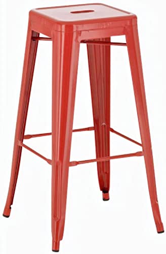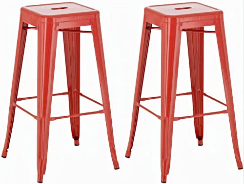 CLP Set 2 Sgabelli Bar Joshua in Metallo I Coppia Sgabelli Industriali Senza Schienale Impilabili Alt 77 CM, Colore:Rosso
