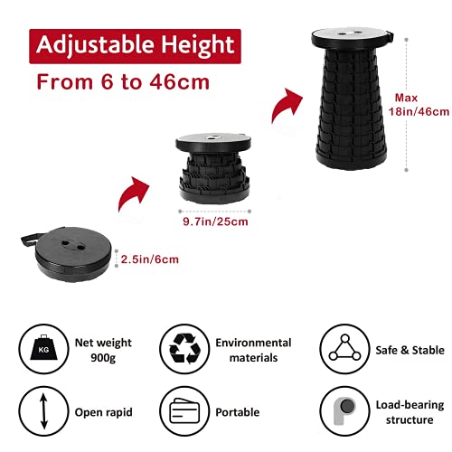 Altezza regolabile con un uso senza sforzo Lo sgabello telescopico portatile è in grado di regolare la gamma di altezza da 6 a 46 cm. 12 posizioni possono essere scelte per soddisfare il tuo scenario di utilizzo e massimizzare la tua comodità. Lo sgabello può essere facilmente aperto e chiuso senza sforzo entro 1 secondo senza stress.