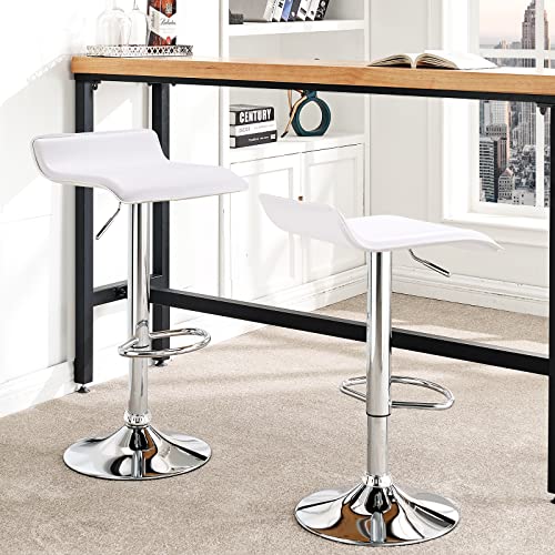 2X Sgabelli da Bar in Similpelle Bianco Regolabile in Altezza Girevole DH0036