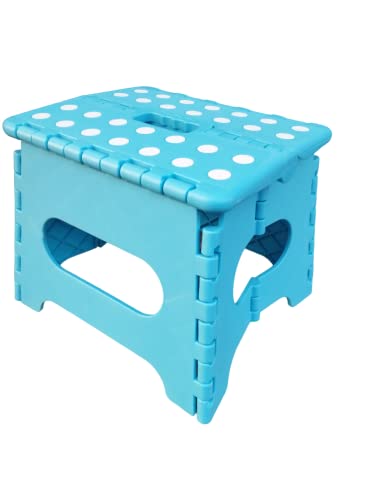 Sgabello richiudibile in pvc, con punti di alta aderenza nella parte superiore di sicurezza, pad, piedini antiscivolo nella parte inferiore. Sedia, sgabellino testato per uso domestico.