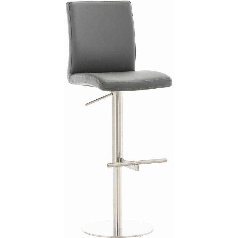 Sgabello Cadiz in similpelle Elegante sgabello bar moderno con seduta comodamente imbottita e dotata di alto schienale incurvato. La scocca si presenta rivestita in similpelle 100% poliuretano, elastica e facile da pulire. Questa è inoltre girevole a 360° e regolabile in altezza tramite pratica leva. La base piedistallo è realizzata in robusto acciaio inox, con piatto tondo completo di antiscivolo e antigraffio. Scopri le combinazioni di telaio e fodera e individua il tuo complemento bar o cucina ideale. Composizione dei materiali della seduta: similpelle (100% poliuretano) Misure ca.: Altezza totale: 93-118 cm Larghezza totale: 40 cm Profondità totale: 49 cm Altezza seduta: 59-84 cm Superfici seduta: 40x40 cm Altezza schienale: 38 cm Larghezza schienale: 37 cm Altezza poggiapiedi: 15-40 cm Peso: 17 kg Seduta: Fodera: similpelle 100% poliuretano Spessa imbottitura Regolabile in altezza e girevole Base: Materiale: metallo nero opaco Materiale: acciaio inox spazzolato Base tonda