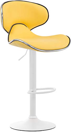 CLP Sgabello Design Cucina Las Vegas V2 In Similpelle Con Schienale I Sedia Alta Imbottita Girevole Regolabile 62-82 CM, Colore:giallo, Colore del telaio:bianco