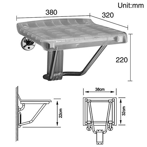 Sgabello da Doccia Pieghevole Trasparente in Acciaio Inox Sgabello da Bagno, Panca per Scarpe, Sedile Ribaltabile Antiscivolo da Parete Sedia per Doccia per Anziani, Disabili