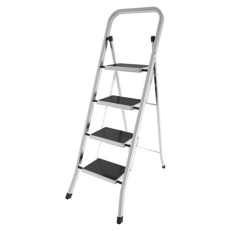 Scaletta in alluminio 4 gradini con tappetino antiscivolo piedini antiscivolo Portata massima 150 kg Prodotto a norma EN 14183 certificato TÜV-GS