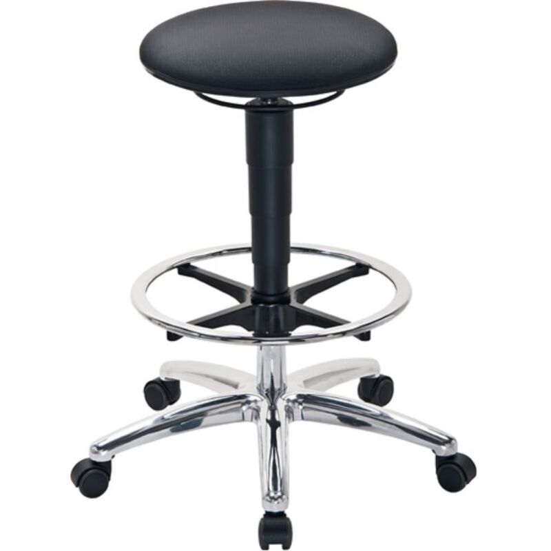 Secondo din 68877 · regolazione dell'altezza del sedile a molla a gas facile da usare · Sedile-Ø 400 mm · cuscini della seduta di forma ergonomica in tessuto Supertec, estremamente resistenti, resistono alle influenze meccaniche · traspirante, confortevole, morbido e lavabile · Sottotela con base stabile in alluminio con rulli di arresto del sedile - bloccato sotto carico, rotolabile in condizioni di scarica e anello del piede regolabile all'infinito in altezza