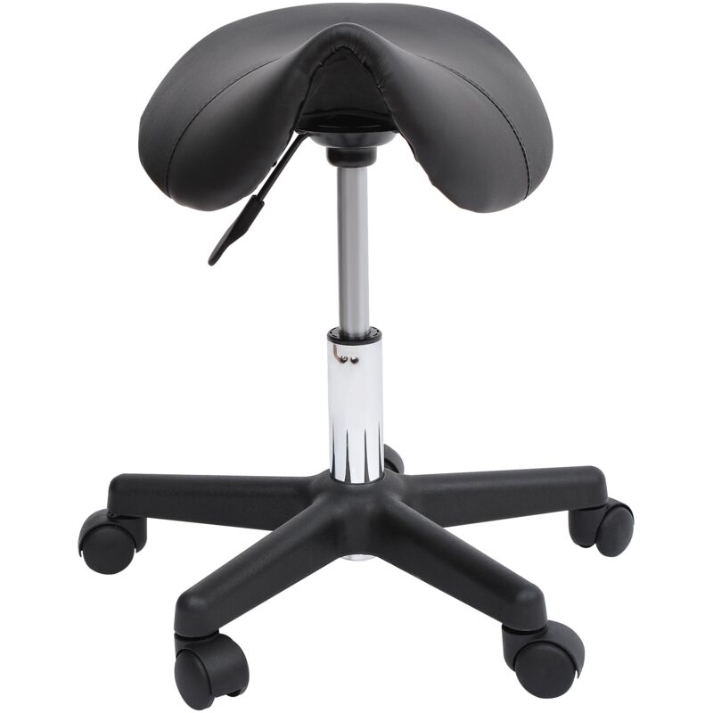 Sgabello Sgabello Girevole a Sella per Parrucchieri con Ruote e Altezza Regolabile 35x38x43-55 cm in Similpelle Nero Ideale per saloni di bellezza, parrucchieri, estetisti e studi medici o dentistici, questo sgabello da lavoro a sella offre supporto, stabilità e libertà di movimento durante le lunghe ore seduti. Il sistema di sollevamento regolabile ti consente di trovare l'altezza ideale per lavorare al meglio. Il cuscino a sella ad alta densità promuove una buona postura e supporta schiena e gambe, mentre la rotazione a 360 gradi e le ruote permettono di spostarsi facilmente senza alzarsi. Specifiche Tecniche Adatto per saloni di bellezza, centri estetici, studi di tatuaggi e studi di dentisti o medici L'altezza dello sgabello per parrucchiere ed estetista è completamente regolabile con la leva a gas Il design aperto dello sgabello consente libertà di movimento mentre si è seduti 5 ruote antiscivolo per uno spostamento fluido e sicuro Facile da montare, leggero e facile da riporre