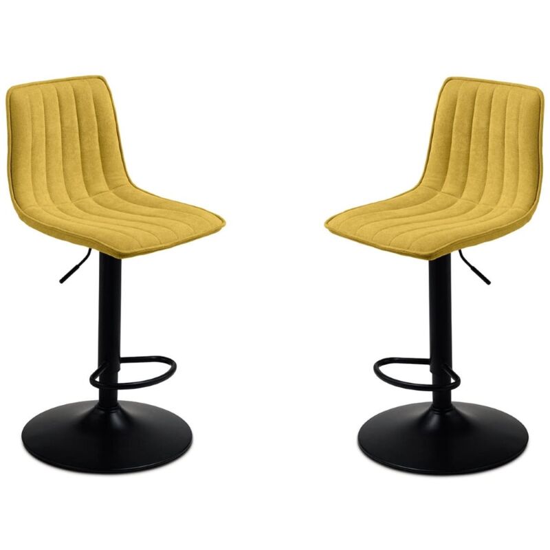 2 sgabelli KOLE con schienale e seduta imbottita in tessuto e struttura in metallo veniciato. Altezza regolabile con sistema a pistone. .