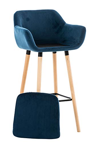CLP Sgabello Bar Grant In Velluto Sfoderabile I Sedia Alta Cucina In Legno Di Faggio Con Cuscino Removibile, Colore:blu