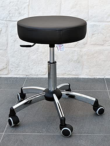 Sgabello da Lavoro, Base e pistone Cromato, per Centro estetico ambulatorio Studio Medico, rotelle in Gomma per parquet, Rotazione Libera di 360°, 7 cm di Imbottitura, Diversi Colori Disponibili