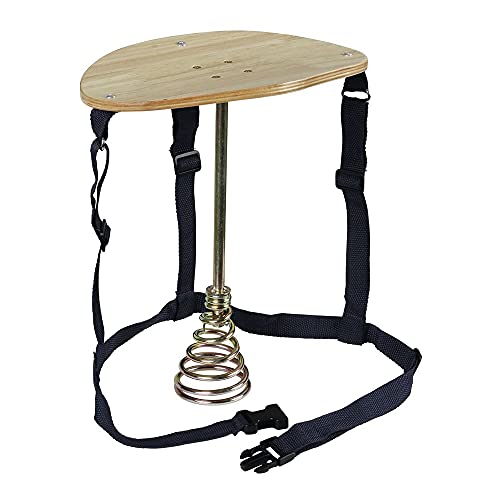 con gamba in acciaio, molla elicoidale e seduta in legno.