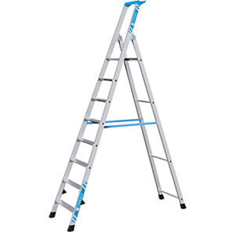 Scala a libro pieghevole, salita da un solo lato, con vaschetta, per facili impieghi, 8 gradini incl. piattaforma. Fornitura = montato. Salita = su un lato. Versione da salita = gradini. N. gradini, piattaforma inclusa = 8 pz. Materiale telaio = alluminio. Materiale gradini = alluminio con rivestimento antisdrucciolo. Altezza piattaforma = 1700 mm. Peso = 10.2 kg. Lunghezza montanti = 2490 mm. Caratteristiche = pieghevole. Portata = 150 kg. Caratteristiche scala = vaschetta portamateriale, staffa di sicurezza. Sicurezza e libertà di movimento ottimale. Robusta struttura in alluminio con pratica vaschetta portamateriale. Gradini e piattaforma antiscivolo. Per piccoli impieghi occasionali e leggeri.