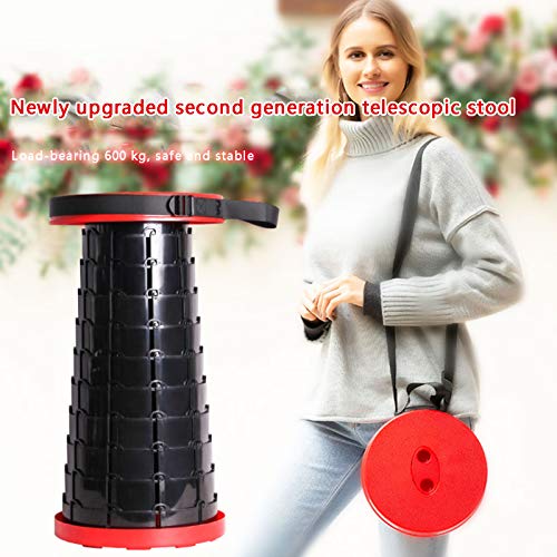 Sgabello Pieghevole Portatile Plastica a Telescopico Regolabile in Altezza per Campeggio, Escursionismo, Pesca, BBQ, Interno, Seconda Generazione, Carico Massimo 300 kg, Facile da Trasportare,Nero