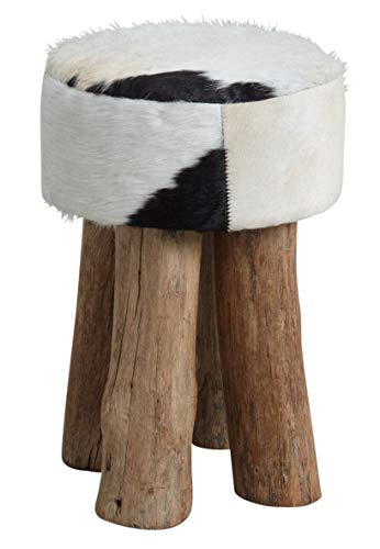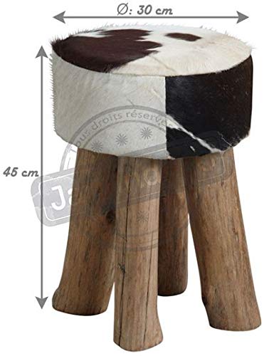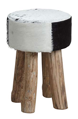 Sgabello rotondo in pelle di mucca nera e bianca 100% naturale, piedi in legno.