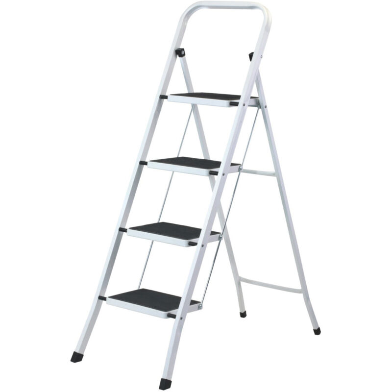 In acciaio verniciato. Profilato rettangolare, gradini larghi antiscivolo. 4 gradini Altezza piattaforma 95 cm Altezza a forbice 128 cm Altezza complessiva 140 cm in acciaio verniciato. Profilato rettangolare, gradini larghi antiscivolo. 4 gradini Altezza piattaforma 95 cm Altezza a forbice 128 cm Altezza complessiva 140 cm