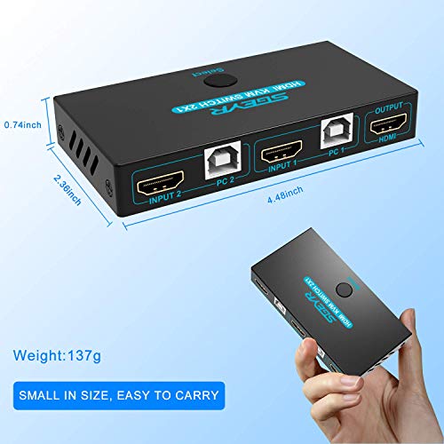 SGEYR Switch a 2 porte: lo switch HDMI USB a 2 porte supporta la porta HUD USB 2.0, la condivisione kvm USB 2 in 1 per condividere un monitor HDMI compatibile e una stampante, scanner, proiettore, tastiera wireless Bluetooth e mouse senza dover sostituire continuamente i cavi o impostare un complicato software di condivisione di rete. è molto facile use.Plug and Play, nessun driver è necessario, il miglior interruttore Kvm per rendere il vostro spazio di lavoro ordinato ed efficiente.