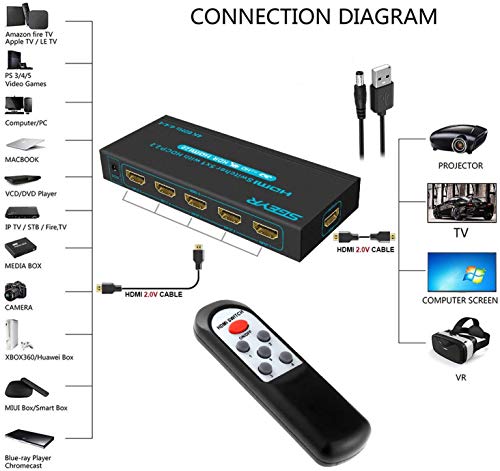 SGEYR Splitter Hdmi con telecomando, splitter Hdmi Switch, Hdmi Switch, Distributore Hdmi Splitter Dual Monitor, Hdmi Splitter 5 in 1 Out, Switch 4K Hdmi per TV, console di gioco, Windows, Xbox
