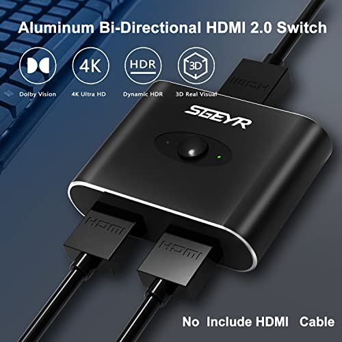 SGEYR Switch HDMI Splitter HDMI in alluminio, splitter HDMI 2 in 1 o 1 in 2 Bi-Direction HDMI Switcher supporta 4K, 3D, 1080P HD manuale HDMI per HD TV/Blu-Ray/DVD/PS4/Xbox (nero)