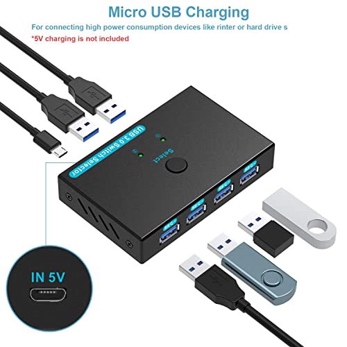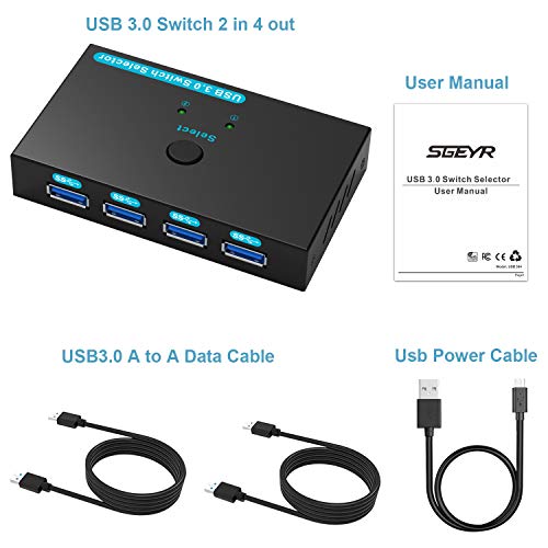SGEYR USB 3.0 Switch Selector, Commutatore USB 2 Ingressi 4 Uscite, Switch per 2 PC con 2 Monitor Usb e Hdmi, Switch Mouse Tastiera 2 PC, Switch Usb Stampante, per Mouse, Scanner, Stampante, Tastiere