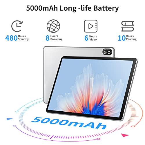 Durata della batteria tutto il giorno: fornendo una batteria ricaricabile da 5000 mAh, il tablet a risparmio energetico è progettato per durare fino a 8 ore con una singola carica, in modo da poter lavorare o giocare tutto il giorno mentre sei in viaggio. Il tablet pesa solo 0,54 kg e ha uno spessore di soli 9 mm, il suo profilo leggero e ultra sottile ti consente di trasportarlo facilmente ovunque tu vada.