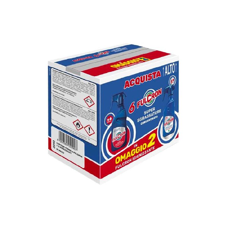 SGRASSANTE UNIVERSALE "FULCRON 500ML" (KIT 6+ 2 IGIENIZZANTI) AREXONS Kit: 6+2 Scatola in cartone composto da 6 pezzi Fulcron sgrassatore da 500 ml + 2 pezzi omaggio Fulcron igienizzante da 500 ml.