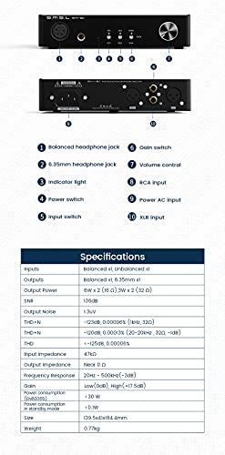 S.M.S.L SH-8s Amplificatore per cuffie ad alta risoluzione 6,35 mm RCA XLR Bilanciato sbilanciato AMP High-Low Two Gain Amplificatore per cuffie