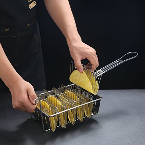 SH-RuiDu 6 conchiglie Taco Basket, Taco Shell Fry Basket tiene friggitrice con impugnatura maniglia utensile da cucina