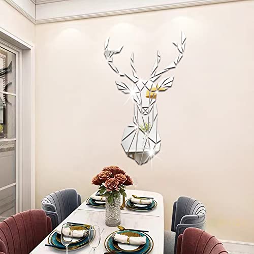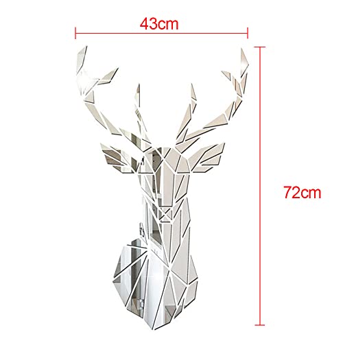 Shackcom Adesivi Murali Testa di Cervo 3D Specchio Adesivo da Parete Acrilici Rimovibili Decorazioni da Parete DIY per Camera da Letto Soggiorno-Argento-72 * 43cm