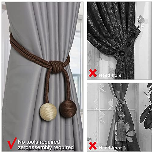 Shackcom 2 Pezzi Fibbia in Tieback per Tende Fermatenda Tende Magnetico Cravatta Tenda Magnetic Curtain Tiebacks Accessorio per Tende per Casa,Ufficio,Decorazione di Hotel-48cm-Marrone+Beige