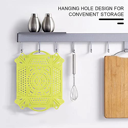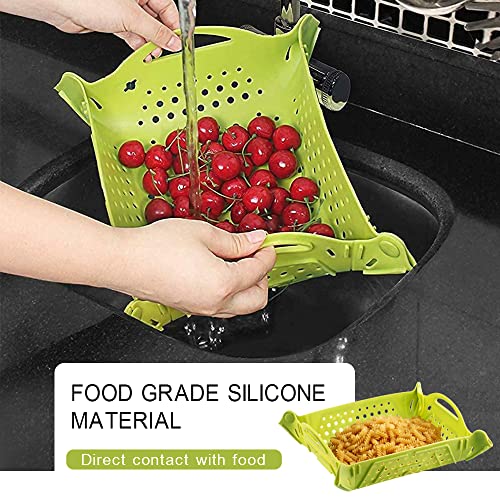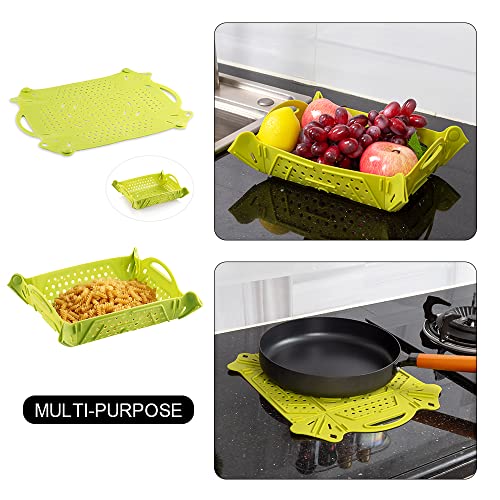 Shackcom 2 in 1 Scolapiatti multifunzionale in silicone Scolapasta pieghevole Scolapiatti in silicone da cucina per frutta e verdura da lavare-Verde