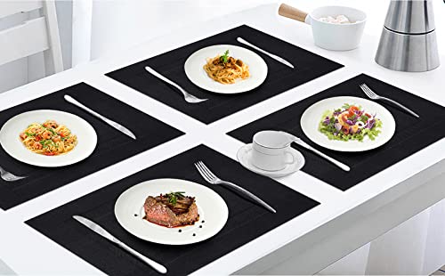SHACOS Nero Tovagliette PVC Set di 6 Tovagliette da Tavola Lavabili Non-scivolose Tovagliette in Vinile Facili da Pulire 45 x 30 Cm