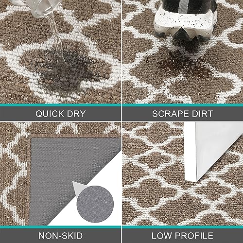 [Supporto antiscivolo]: il fondo di questo tappetino ingresso casa è realizzato con un supporto in gomma di alta qualità, che è quasi antiscivolo sulla superficie del pavimento e non si muove o scivola facilmente e fornisce un ulteriore livello di protezione per il tuo pavimento Nota: l'effetto antiscivolo non è molto buono quando c'è acqua sul terreno.