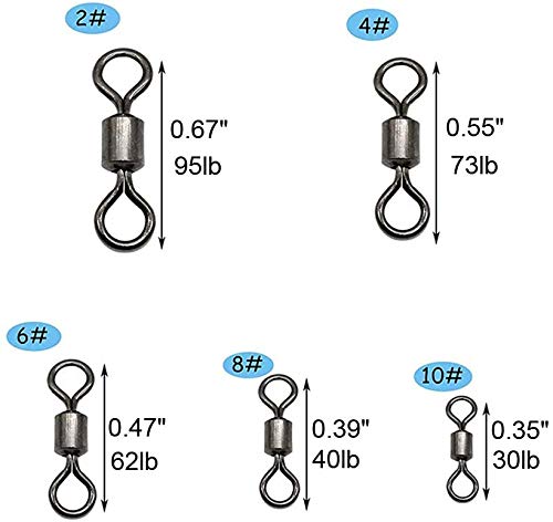 Shaddock Fishing ® 320pcs/box Size 2 4 6 8 10 Strong Fishing Rig Swivels Round Eye Fishing Tackle Accessories Line to Hook Connectors by Shaddock Fishing