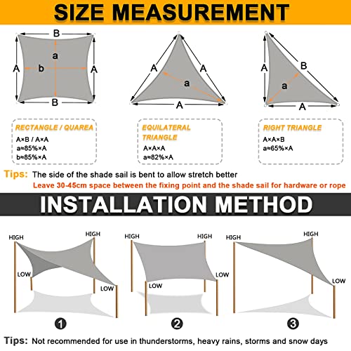 ★【Facile da Installare】: La misura viene presa da anello D a anello D, Lasciare lo spazio di 30-45cm tra il punto di fissaggio e l'ombra vela per hardware o corda. La cucitura del telo ombreggiante punta a terra. Suggerire un angolo di montaggio da 20 a 40 gradi per la massima tensione. Consente all'acqua di scaricare rapidamente