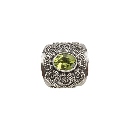 Shadi - Anello in argento Sterling con peridoto naturale sfaccettato, in stile etnico, (gioielleria artigianale in argento), ideale come regalo per uomini e donne, per Natale, Epifania, compleanni e Argento, 20, cod. R1.1705PE-20