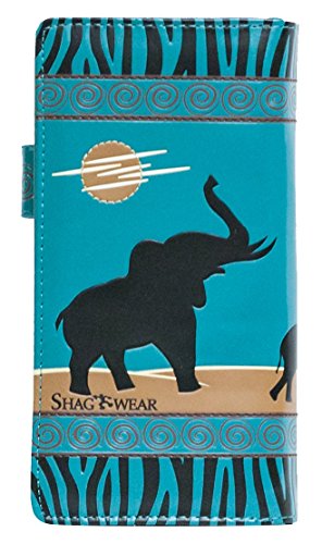 Shagwear portafoglio per giovani donne, Large Purse: Diversi colori e design: (safari elefanti verde-blu/Elephant Safari)