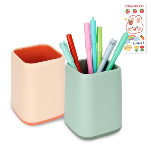 SHAIDOJIO 2 PZ Portapenne, Nordic Style Portapenne Scrivania con 1 PZ Adesivi Carini, 2-Color Splicing Portapenne da Scrivania Ufficio per le Donne Ragazza Bambini per Ufficio, Scuola, Casa (2PZ)