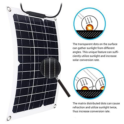 Materiale del pannello solare flessibile: il pannello solare flessibile può piegarsi fino a 20 gradi di arco. È un modello leggero che non utilizza un telaio in alluminio o vetro temperato e ha un'eccellente flessibilità. Adatto per caravan, auto, barche a vela, yacht e camion, autobus, tende, rimorchi.