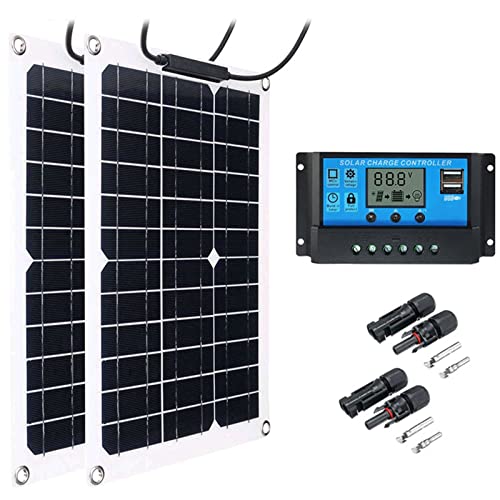 SHAIRMB Kit Pannello Solare 30W 2 Pezzi 15W Pannello Solare Flessibile 12V Caricatore Solare Impermeabile Fotovoltaico 10-60A per Auto/Yacht/Barca Leggera,Solar+60acontroller