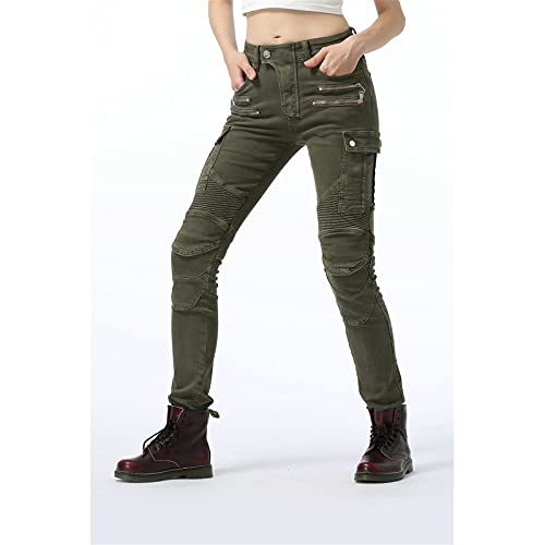 SHAIYOU Donna Pantaloni da Moto,Motorcycle Jeans Stretch Biker Motociclista Lavoro Pantalone Multitasche con 2 Estraibile Protezioni Ginocchia E 2 Protettori Anca (Verde,L)