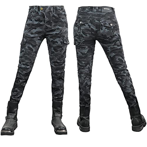 CARATTERISTICHE: I pantaloni da moto da donna sono progettati con stampe mimetiche popolari e alla moda. Le tasche multiple possono contenere completamente oggetti personali come telefoni cellulari e portafogli. La versione sciolta offre grande flessibilità e libertà di movimento. I jeans da moto sono progettati appositamente per i motociclisti, tolgono l'armatura del ginocchio e dell'anca e possono essere usati come jeans casual.