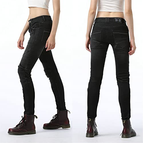 SHAIYOU Donna Pantaloni da Moto,Motorcycle Jeans Stretch Biker Anti-Caduta Motociclista Pantalone Multitasche con 2 Protezioni Ginocchia E 2 Protettori Anca (Nero,L)