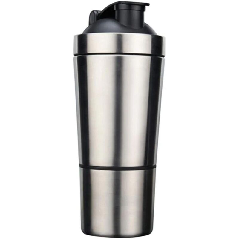 Colore come mostrato Taglia: 22*7 cm Peso: 380 g Bicchiere in acciaio inossidabile di grande capacità - SENZA BPA - Capacità 700 ml con segni di misurazione su il lato per una miscelazione precisa, facile da usare, senza parti sciolte. Pulire questa bottiglia è facile, mentre si consiglia di lavare a mano questa bottiglia e il coperchio, frusta a sfera di metallo e mescolatore incorporato: sarà un ottimo frullato proteico dal gusto senza grumi. Il coperchio si svita facilmente per il riempimento e contiene un agitatore incorporato per mescolare la tua bevanda e un contenitore integrato per conservare le polveri secche per la miscelazione: Con il suo corpo in plastica priva di BPA e acciaio inossidabile di alta qualità, questa bottiglia è completamente atossica. Lo shaker per proteine in acciaio inossidabile è il miglior regalo per ogni appassionato di fitness in ogni occasione, come il campeggio, yoga, viaggi, palestra o passeggiate mattutine. Un ottimo shaker proteico di lunga