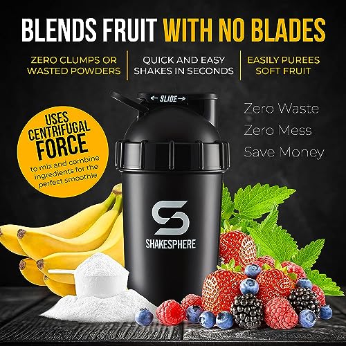 SHAKESPHERE - Shaker per Bevande proteiche/Smoothie - a Forma di Capsula - Senza BPA - 700 ml (Nero Opaco con Logo Nero)